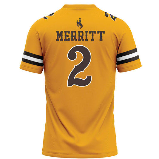 Wyoming - NCAA Football : Caleb Merritt - Gold Football Jersey