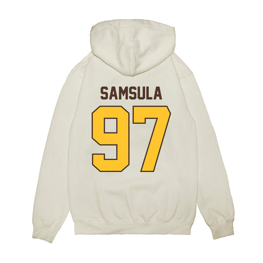 Wyoming - NCAA Football : Lucas Samsula - Vintage Helmet Premium Hooded Sweatshirt