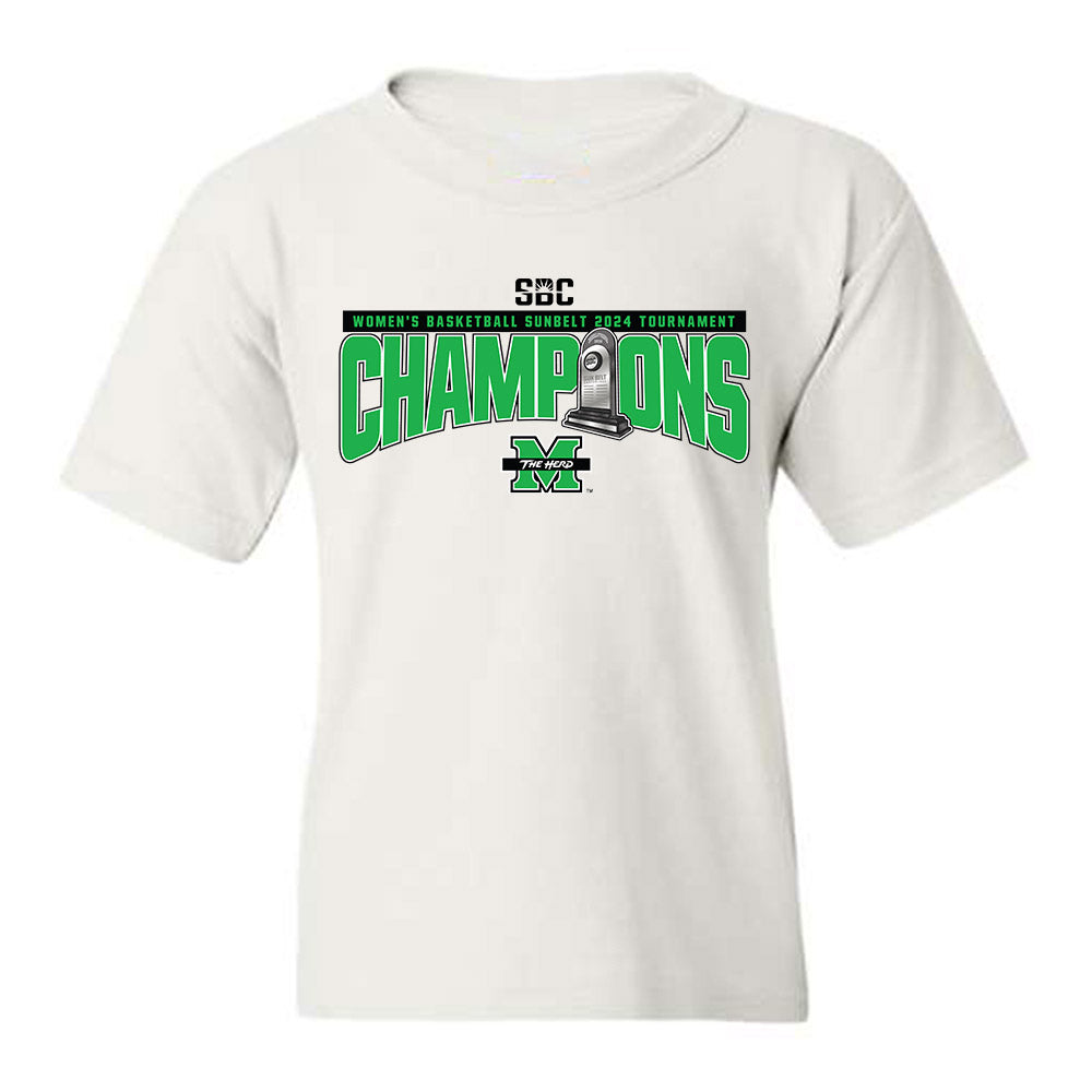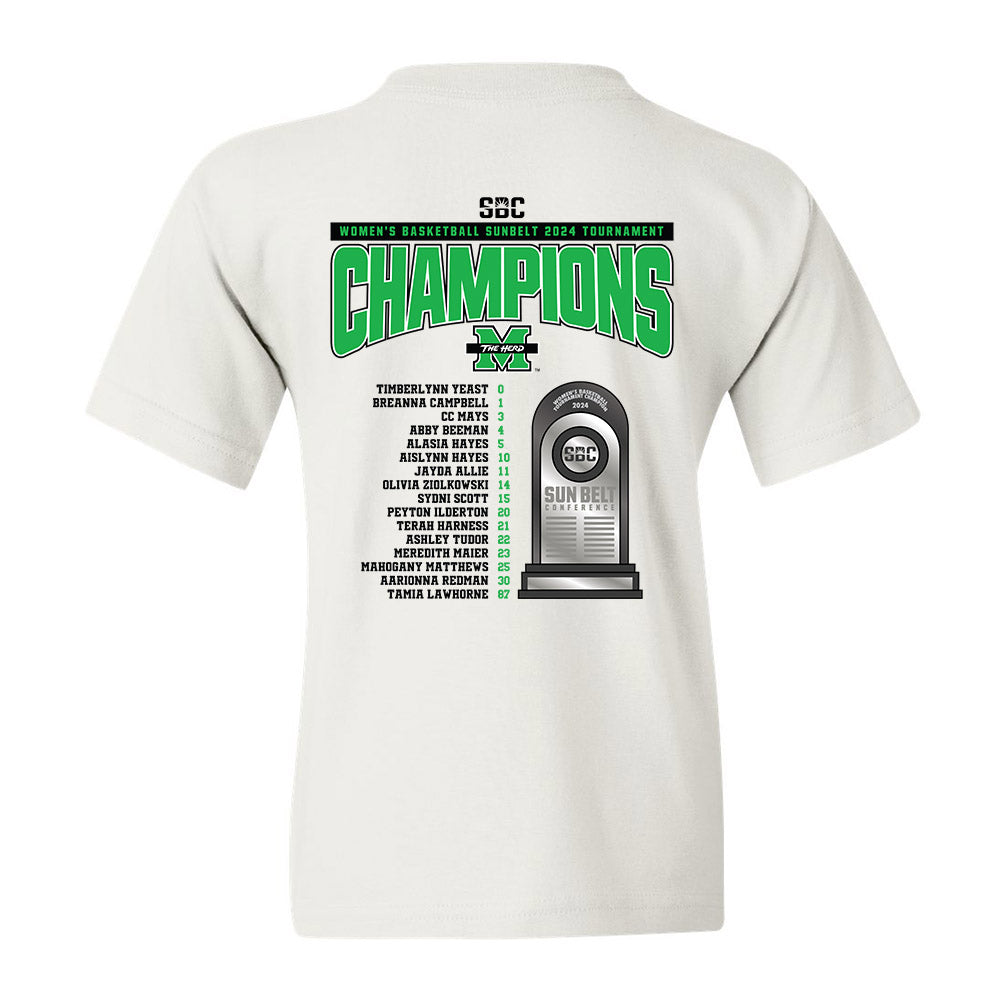 Marshall - NCAA Women's Basketball : 2024 Sunbelt Tournament Champions - Youth T-Shirt Roster Shirt